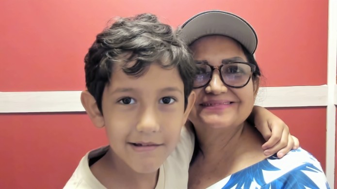 Autor: Joaquim e vovo no museu Mep, escutando a terra.
