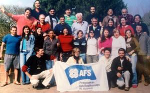 R – É, inspirada a fazer sofrer. Então, na verdade eu preciso até ver o que ela está fazendo hoje, mas essa moça era de uma família muito humilde de Sorocaba (SP), acho que ela tem talvez uma vida muito parecida com a minha no sentido de dificuldades, de limitações, infelizmente que acontece com a maioria dos brasileiros. Quando eu resolvi dar essa bolsa, eu não resolvi dar essa bolsa porque eu queria simplesmente, sabe, eu tenho dinheiro e eu vou pagar pra essa pessoa ir porque fiquei com dó dela, entendeu? Não tive esse sentimento, meu sentimento foi de, eu vi nos olhos dela o brilho que eu tinha nos meus. As pessoas falavam que eu tinha esse brilho, essa vontade: “Cara, eu preciso mudar, eu preciso mudar o mundo. Eu só consigo mudar o mundo se eu me mudar, me transformar”. Então como eu vi isso nos olhos dela eu não consegui, eu voltei pra casa e eu fiquei muito incomodado com a situação: “Não é possível que alguém com tanta vontade, com esse brilho no olhar, não é possível que essa pessoa não vá ter essa oportunidade que ela quer tanto”. Então quando eu resolvi dar essa bolsa, eu tinha certeza que estava fazendo um investimento naquilo que eu acreditava. Eu estava fazendo um investimento na vida de alguém, entendeu? Que a gente pode fazer, é uma coisa que a gente pode fazer todo dia e a gente se envolve tanto com as coisas e a gente ou não tem tempo, ou a gente não tem a sensibilidade em alguns momentos no sentido de tomar algumas decisões na vida que podem ajudar. Assim, eu tenho certeza que a vida dessa moça foi outra depois disso, independente do que ela resolveu fazer na vida. Coincidentemente depois eu conheci a pessoa que era a presidente do comitê que ela ficou na Argentina e eu soube por ele que ela teve uma mega experiência. Então isso pra mim foi muito gratificante porque é o que sempre disse no AFS, todos nós temos um momento de ser voluntário na organização, esse momento pode ser um mês, um dia, dez anos, a vida inteira. O que a gente pode fazer é sempre, quer dizer, a gente carrega uma chama que começou lá atrás quando estudantes americanos resolveram ir pro front da guerra dirigir ambulância, fazer resgate de feridos da guerra. Então alguma fez com que esses caras saíssem do senso comum. E esses caras iniciaram algo que tem mais de cem anos, vai fazer 60 anos no Brasil. Então assim, eu tive o meu momento de carregar a chama do AFS junto com centenas de outras pessoas, então ter trazido essa moça pra dentro dessa missão do AFS eu acho que foi uma das melhores coisas que eu fiz na vida, que eu podia ter feito na vida. Porque com certeza ela passou essa chama pra alguém, esse outro alguém vai passar e daqui a 200 anos vai ter alguém falando sobre o AFS, daqui mais cem anos.