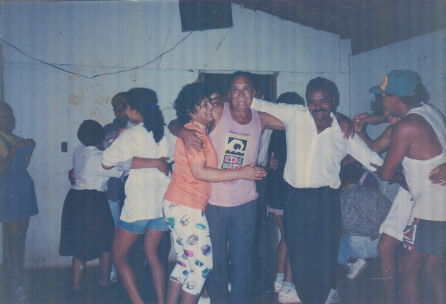 R – Sim. Quando eu conhecia minha esposa, foi como eu tava falando, eu cheguei de viagem com uns oito dias, 15 dias ela foi lá na casa dos meus pais, eu a vi, aí dali eu já comecei assim, mas eu já cheguei… Quando eu cheguei lá no lugar onde meus pais moravam, no interior, na roça, então de noite, eu cheguei de tardezinha e tal, de noite juntou um bocado de gente lá em casa e tal. “É o filho do João Vicente e tal, não sei o que”. Ali já entrou uma menina, que tem dessas mais atiradas um pouquinho, né? Ela já entrou, eu já... Aí eu falei não, já vou... Dali já comecei a conversar com ela, no outro dia a gente já saiu, conversamos e tal. Às vezes tinha uma matinê, uma festinha que chamava nesse tempo, aquilo ali, aquela musiquinha ao vivo, a gente ia pra lá. Então ali começou a namorar. Com uns 15 dias ou 20 dias ou mais, essa minha esposa apareceu, que meu irmão já tinha falado que era a menina mais bonita do povoado lá que a gente morava, da roça. Eu a vi, menininha bonita, menina. Era bonita minha esposa, ainda hoje é! Aí é que eu conversei com ela. Aí a outra ficou sabendo queria brigar, bater nela. Aí foi a hora que eu fui lá e falei: “Não. Não quero nada com você, vou namorar ela”. Aí fiquei. Aí poucos tempos, aí um ano a gente brigou, separou o namoro, não deu mais certo, aí com uns 15 dias voltamos de novo, aí a gente casou. Ela tinha 13 anos, 14 anos ela teve a primeira filha.