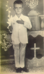 R - Eu, nós somos de origem bastante forte da religião católica, né, minha mãe era, ela tinha uma fé imensa. Minha mãe era daquelas que ia à igreja todos os dias, tá, e a igreja que a gente freqüentava era a igreja dos franciscanos, ali no bairro Martins. Então desde que eu me entendo por gente eu já acompanhava minha mãe, ia para a Igreja e eu comecei a minha escola, comecei a minha atividade escolar na escola dos padres, não é? É Escola Papa Pio XII, lá mesmo nessa igreja, uma escola que marcou bastante.